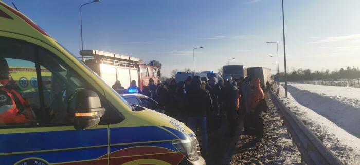 Cztery osoby trafiły do szpitali, 8 zostało opatrzonych na miejscu. To wynik zderzenia autokaru turystycznego z ciężarówką stojąca kolejce do granicy. Do wypadku doszło dziś przy zjeździe z autostrady w Skołoszowie koło Radymna. Droga jest już przejezdna.