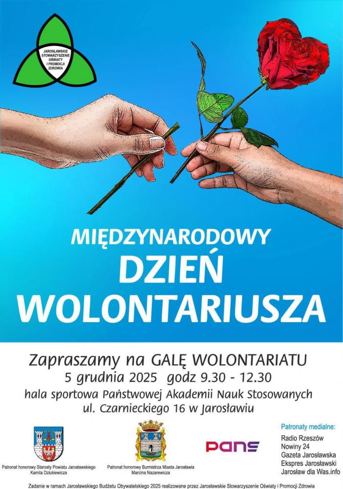 Z okazji Międzynarodowego Dnia Wolontariusza odbędzie się Gala Wolontariatu, która odbędzie się 5 grudnia 2025 r. w hali sportowej PANS w Jarosławiu, ul. Czarnieckiego 16.