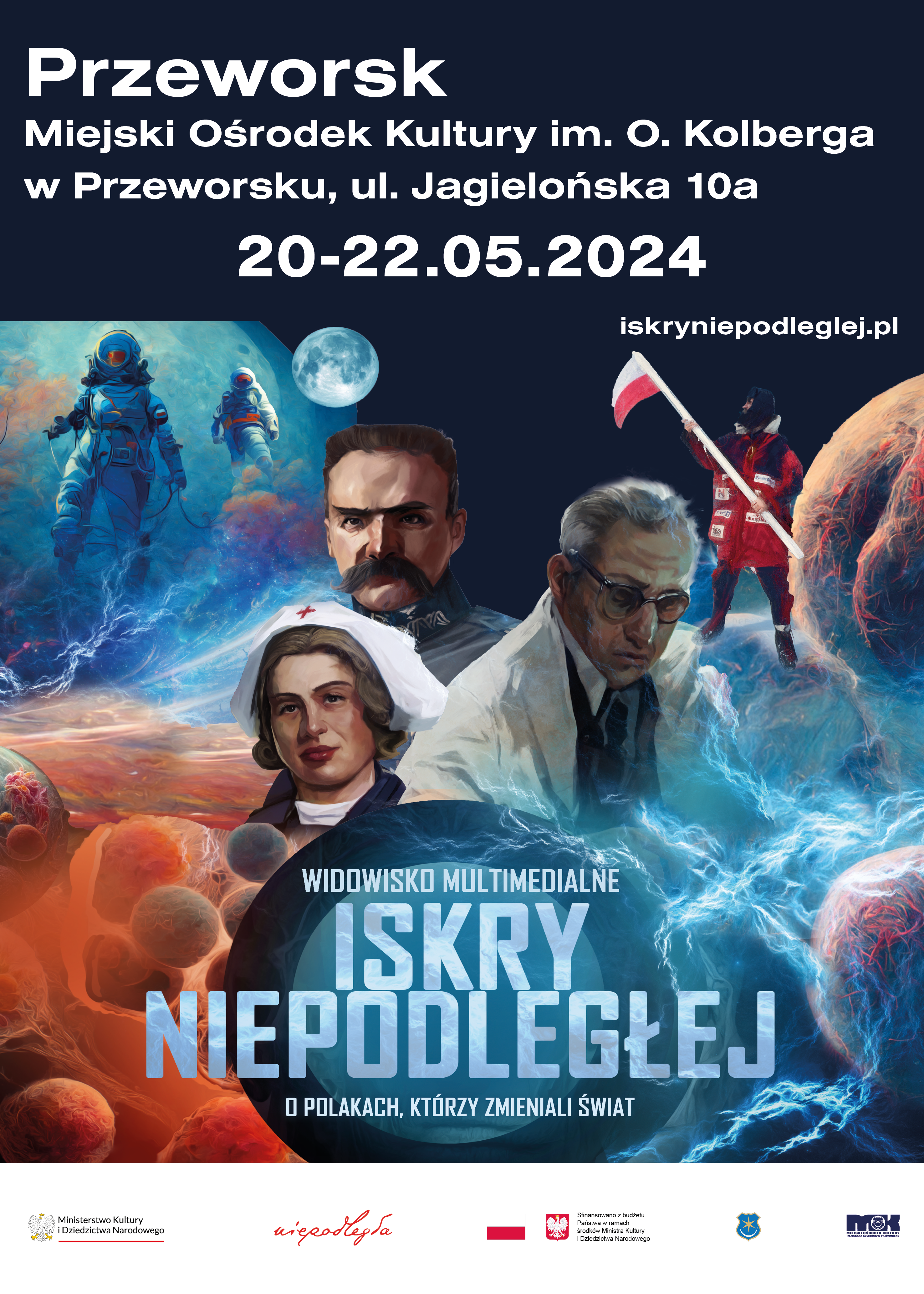ISKRY NIEPODLEGŁEJ to widowisko Biura „Niepodległa" o wybitnych Polkach i Polakach, którzy zmieniali świat. Umieszczono je w specjalnie zaprojektowanej naczepie ekspozycyjnej, dzięki czemu może podróżować po Polsce. Kosmiczny design, cyfrowa opowieść i elementy interaktywne dostępne będą bezpłatnie w miejscowościach we wszystkich województwach.