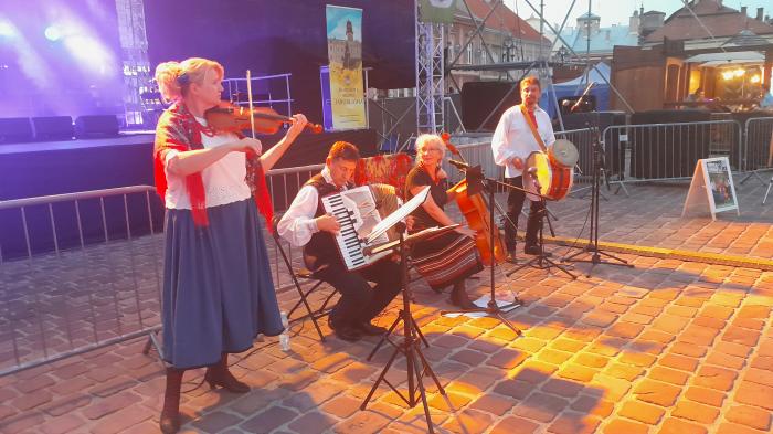 Wybrzmiał hejnał jarosławski, a oficjalne otwarcie Jarmarku Jarosławskiego przypieczętowała salwa. Na scenie wystąpiła C.K. Kapela, a potem do tańca zaprosiła Kapela Fajerka.