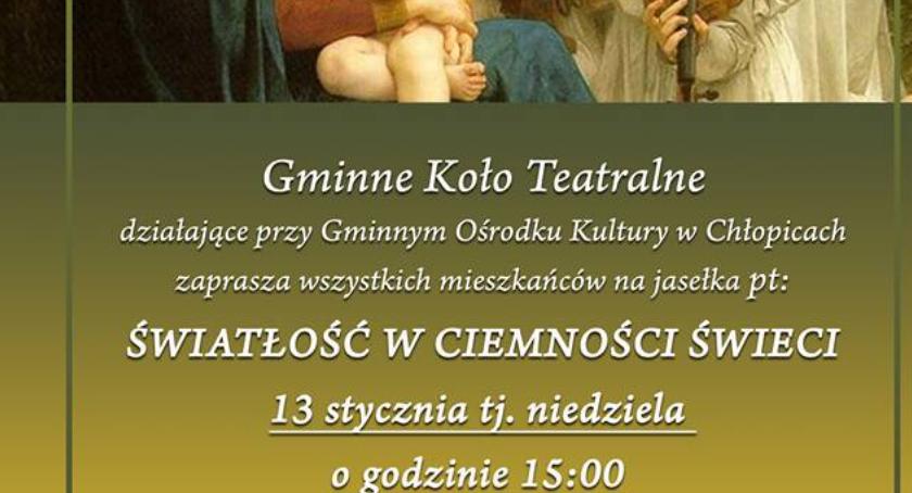 W niedzielę 13 stycznia o g. 15, w świetlicy wiejskiej w Chłopicach, odbędą się jasełka "Światłość w ciemności świeci".