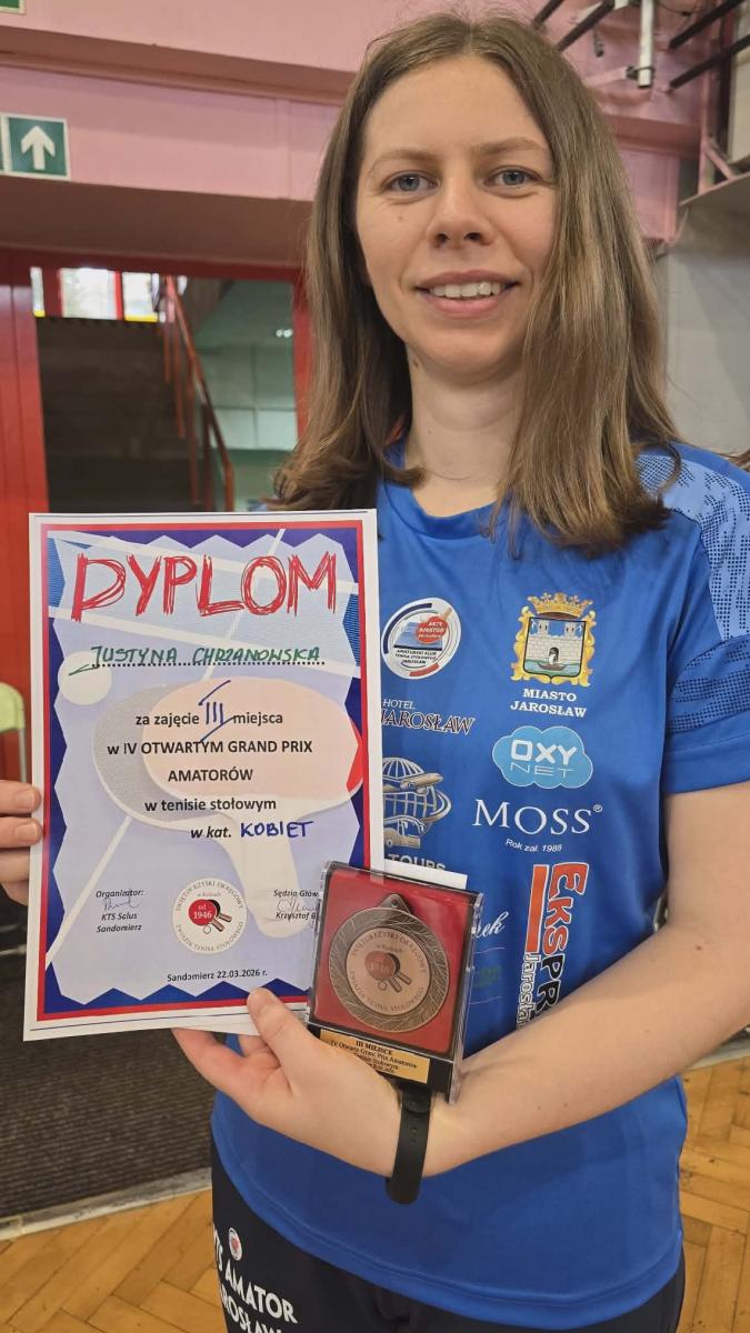 Zawodniczka AKTS Amator Jarosław Justyna Chrzanowska zajęła 3. miejsce w IV Otwartym Grand Prix Amatorów w Tenisie Stołowym w Sandomierzu.