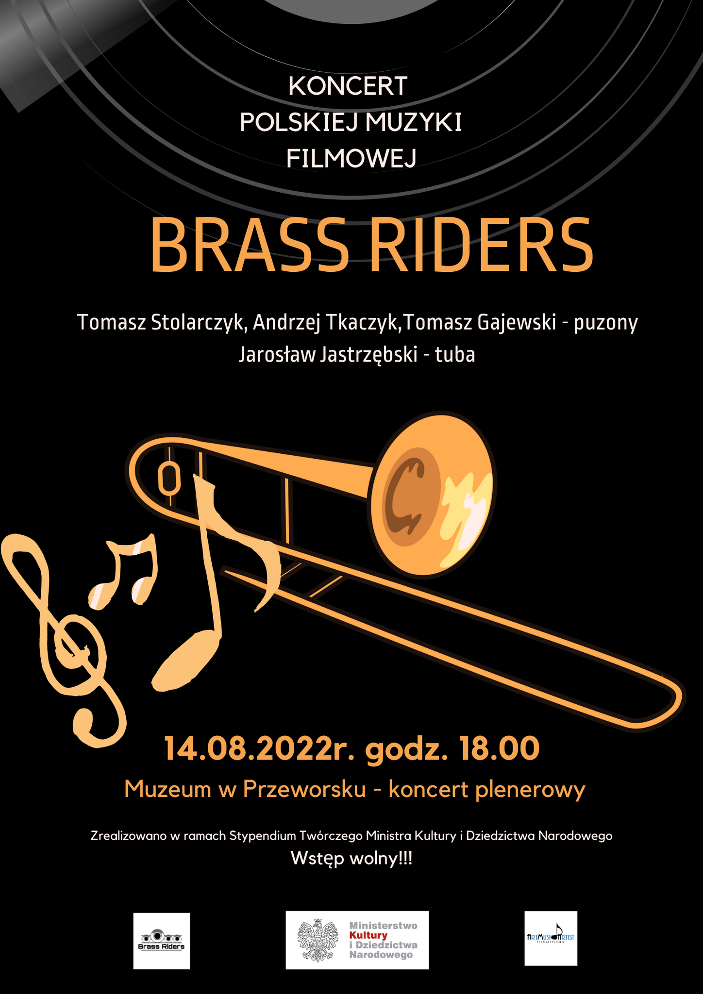 W niedzielę, 14 sierpnia o godz. 18 odbędzie się Koncert Polskiej Muzyki Filmowej BRASS RIDERS w Muzeum w Przeworsku. Wystąpią: Tomasz Stolarczyk, Andrzej Tkaczyk, Tomasz Gajewski - puzony, Jarosław Jastrzębski - tuba. Będzie to koncert plenerowy.