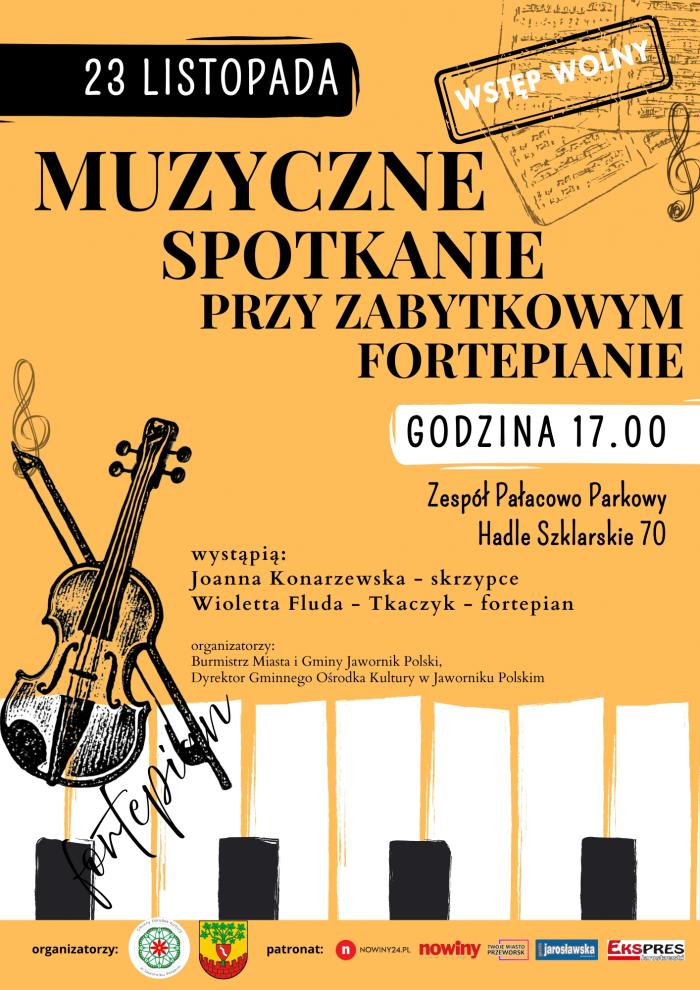 Burmistrz Miasta i Gminy Jawornik Polski oraz Dyrektor Gminnego Ośrodka Kultury w Jaworniku Polskim zapraszają na Muzyczne Spotkanie Przy Zabytkowym Fortepianie.