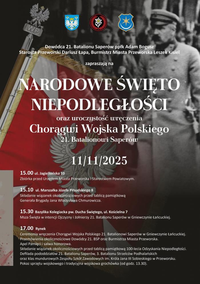 Narodowe Święto Niepodległości i uroczyste wręczenie Chorągwi Wojska Polskiego 21. Batalionowi Saperów.