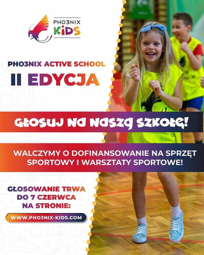 Masz jeszcze szanse oddać głos na Szkołę Podstawową w Wiązownicy w konkursie PHO3NIX Activ School i pomóż wygrać szkole sprzęt sportowy i warsztaty sportowe.