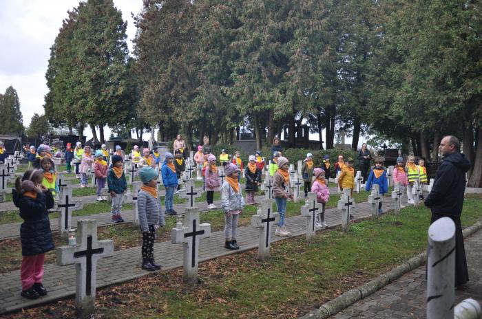 Przedszkolaki wraz z wychowawcami i dyrektor przedszkola Elżbietą Gaweł złożyły wieniec oraz zapaliły znicze m.in. na grobach braci Prośbów, Czesławy Puzon ps. „Baśka”. - Co roku uczestniczymy w akcji Ministerstwa Edukacji Narodowej #SzkołaPamięta. Dzieci nie tylko mogą poznać nasze tradycje, ale także elementy historii Jarosławia - mówi Elżbieta Gaweł, dyrektor Niepublicznego Przedszkola AKADEMIA UŚMIECHU.