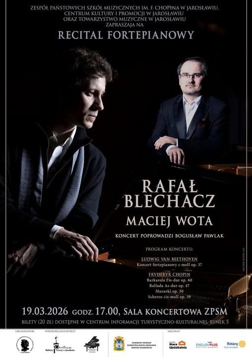 Zespół Państwowych Szkół Muzycznych im. Fryderyka Chopina w Jarosławiu, Centrum Kultury i Promocji w Jarosławiu oraz Towarzystwo Muzyczne w Jarosławiu zapraszają na recital fortepianowy w wykonaniu Rafała Blechacza oraz Macieja Woty, który odbędzie się 19 marca, o godz, 17, w sali koncertowej ZPSM.