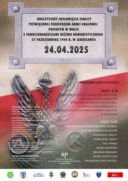 Na terenie Zespołu Szkół Budowlanych i Ogólnokształcących im. Króla Kazimierza Wielkiego w Jarosławiu zostanie odsłonięta tablica poświęcona Żołnierzom Armii Krajowej poległym w walce z funkcjonariuszami reżimu komunistycznego w dniu 27 października 1944 r. Wydarzenie objął Patronatem Honorowym Prezydent Rzeczypospolitej Polskiej Andrzej Duda.