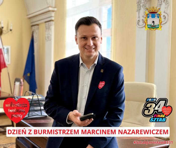 W ramach 34. Finału Wielkiej Orkiestry Świątecznej Pomocy w Jarosławiu można wylicytować dzień pracy z burmistrzem Marcinem Nazarewiczem.