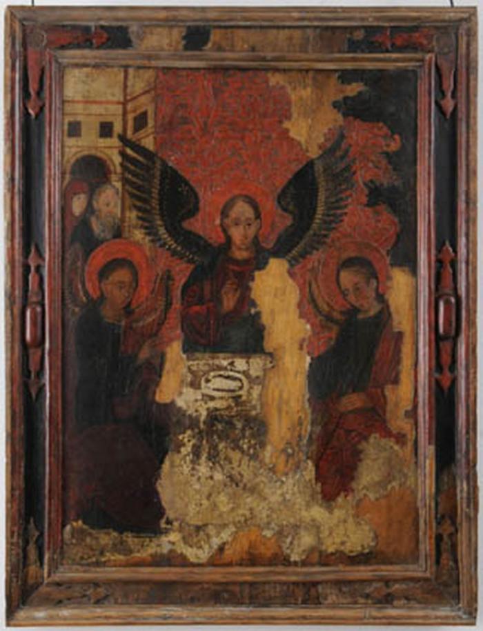 Stan drugiej ikony jest o wiele gorszy. Ikona ta to Deesis, czyli Chrystus zasiadający na tronie i trzymający otwartą Ewangelię, w otoczeniu stojących postaci Matki Boskiej, św. Jana Chrzciciela oraz dwu aniołów. Obraz ma szeroką ramę z dekoracją snycerską.