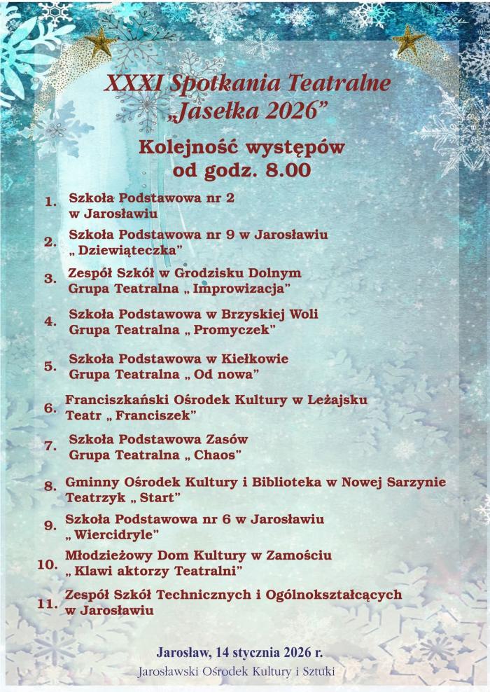 Sala widowiskowa Jarosławskiego Ośrodka Kultury i Sztuki, Pl. A. Mickiewicza 6. godz: 09:00