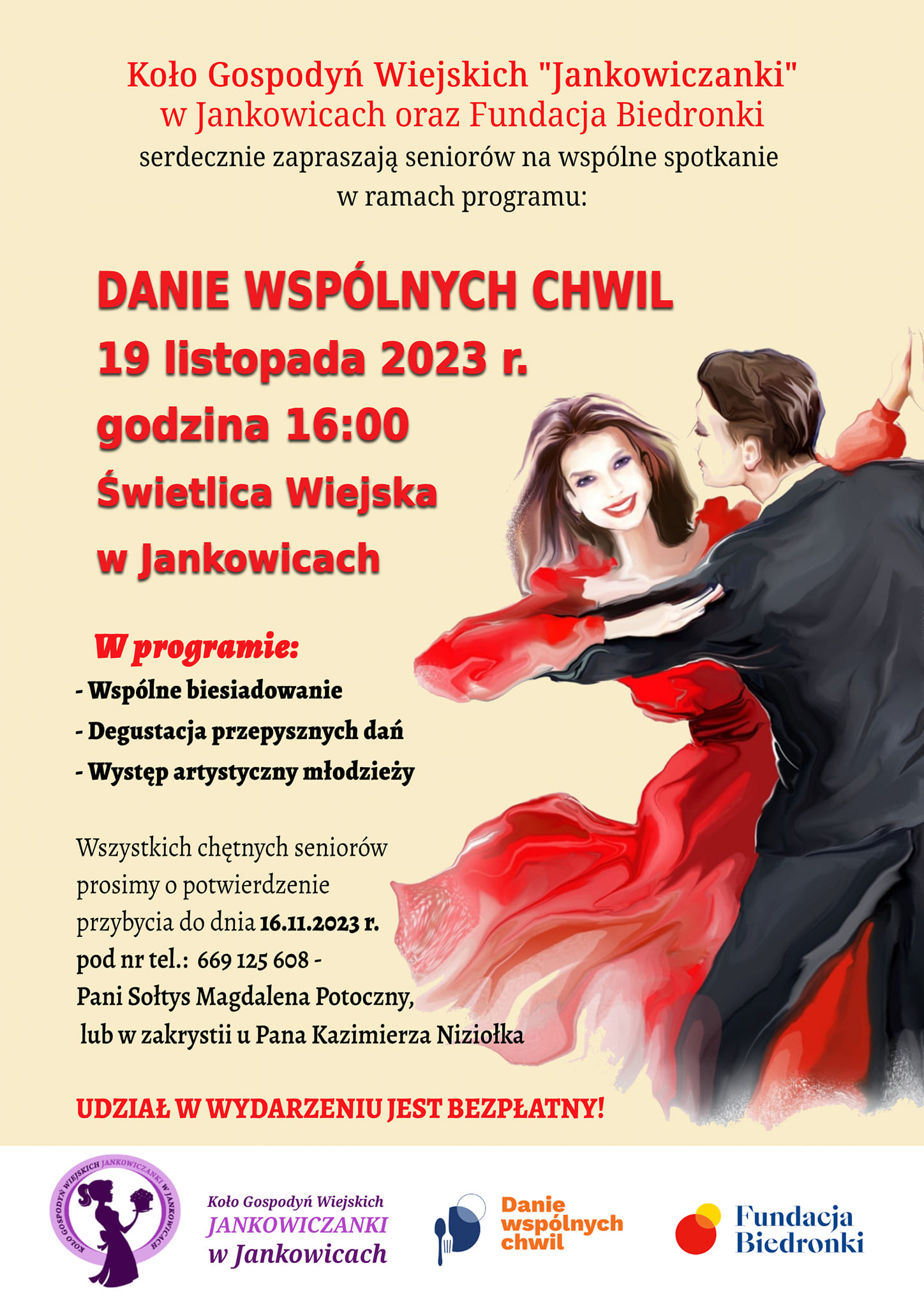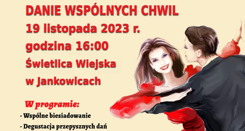 Zapraszamy na wspólne spotkanie seniorów w ramach programu DANIE WSPÓLNYCH CHWIL w Świetlicy Wiejskiej w Jankowicach