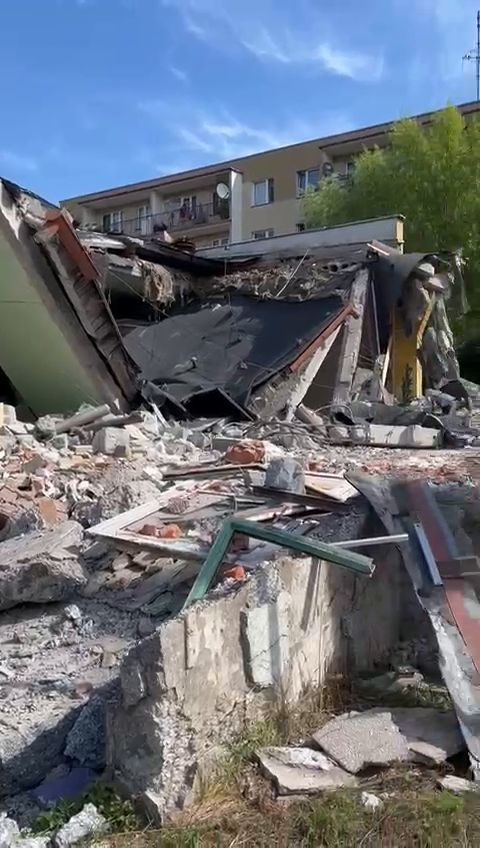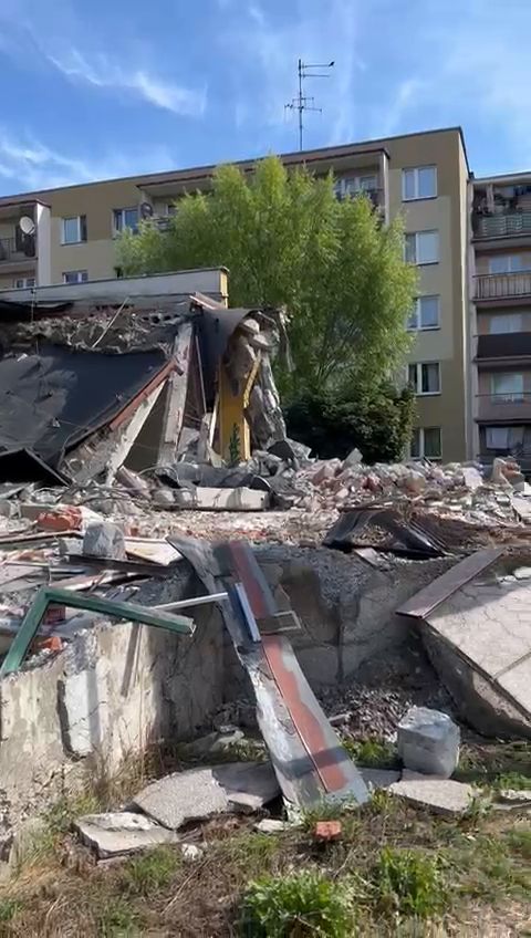 Wideo: Niebezpieczne wyburzenie Jubilata w Jarosławiu. Prace zostały wstrzymane przez inspekcję pracy