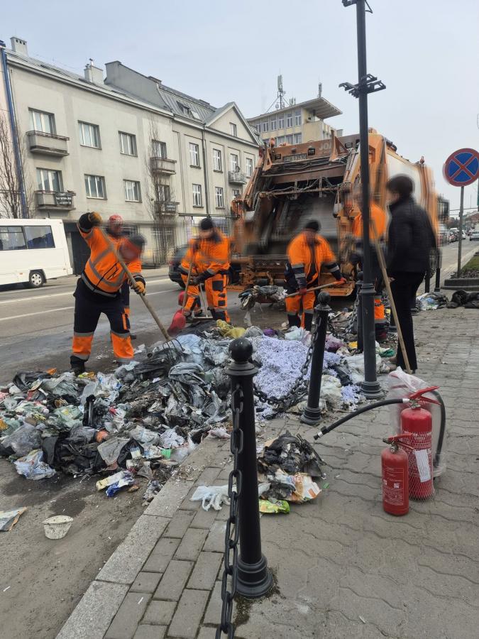 Zdjęcia Pożar odpadów w śmieciarce na ulicy Jana Pawła II w Jarosławiu - fotorelacja