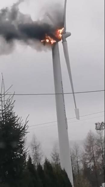 Zapalił się wiatrak w Mokrej (WIDEO, FOTO)