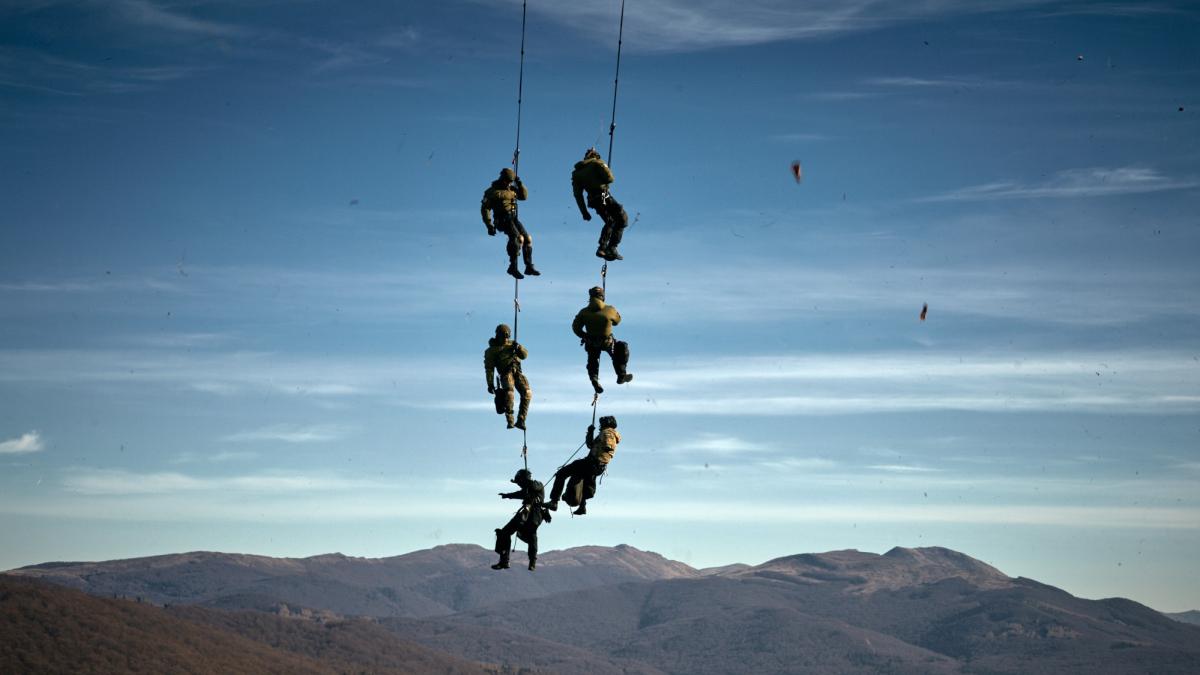Zdjęcia Szkolili się w Bieszczadach z z użyciem policyjnego śmigłowca S-70i Black Hawk - fotorelacja
