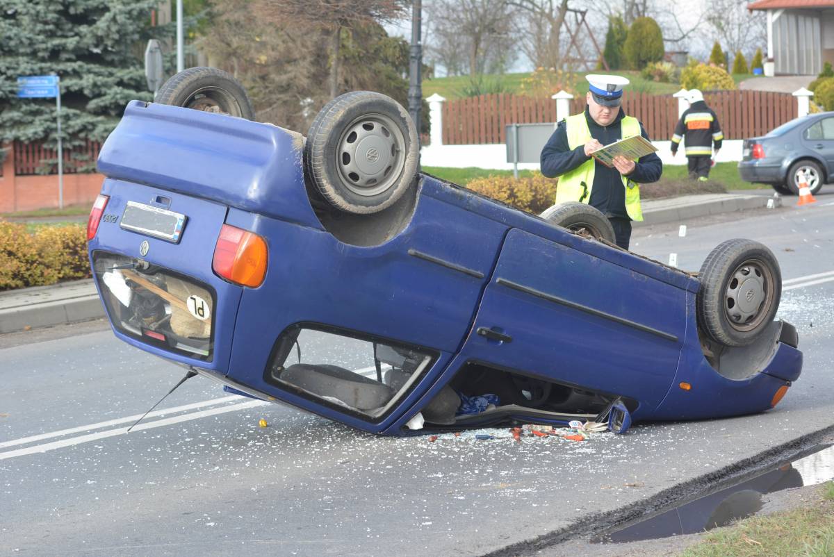 Zdjęcia Volkswagen dachował w Szówsku - fotorelacja