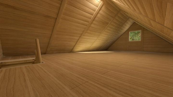 W zestawie znajdują się schody rozkładane prowadzące na piętro. Oferujemy również schody stałe – szersze i bardziej stabilne.